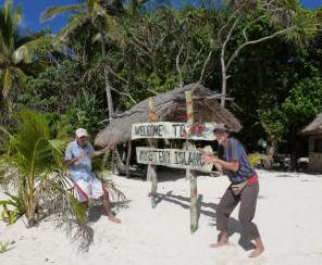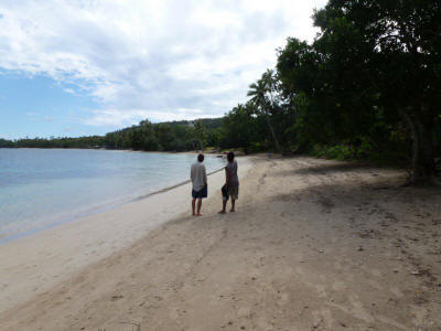 The houses here are also quite different from the usual corrugated tin construction of Fiji. There are woven houses, & even houses built of split logs, which was quite a surprise.After every passage, no matter how short, I feel the need for some exercise, so I proposed a walk on Inyeug, also known as Mystery Island. We packed only the camera & went over to the nearby island in Plover. There were a couple of docks to choose from since cruise ships come here to visit.