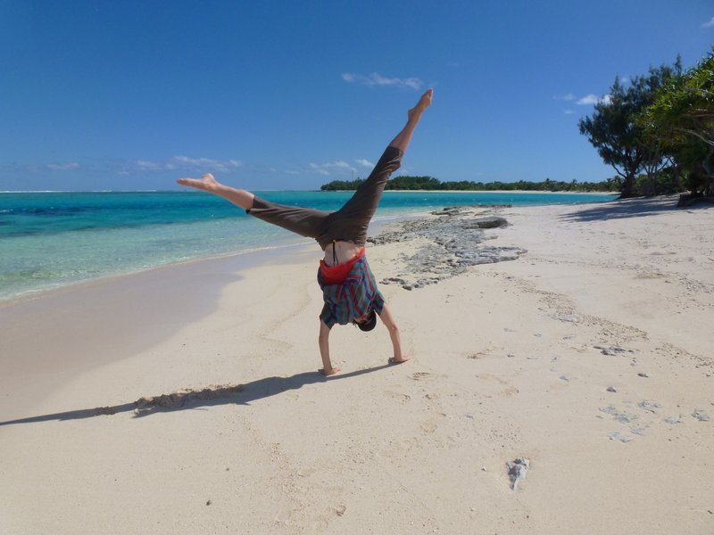 We hadn't realized the full meaning of the cruise ship visits until we walked around a bit & saw all the buildings, picnic tables, long sets of stalls for selling things (now empty, of course), a silly cannibal pot & other photo ops, fancy toilets, signs touting various tours etc. It all felt so fake & touristy. The most startling realization was how much money this place must rake in when a cruise ship comes to visit once a month. And speaking of raking, they rake the coral bits up off the beach! That was a shock. It felt like a fabricated environment made to mimic some of the perfect islands we've actually visited. But admittedly, the walking paths were very nice & picturesque - we didn't wear shoes at all. Pretty plantings, rock walls, benches, even toilets all along the path. It took us less than an hour to walk the perimeter of the island, & we were sorry we hadn't brought our snorkeling gear, as the water was very enticing, so we zipped back to the boat, donned our wetsuits & went back for a swim. The water was pretty cold & the coral wasn't spectacular - it seemed to suffer from algae contamination & no doubt gets beat up by novice snorkelers when the cruise ship comes with its thousands of guests. But there were lots of nice fish, including a new type of brown-colored anemone fish. Conveniently, the current drift carried us all the way around to the other side of the island where Plover was. Felt really good to get in the water. We haven't been snorkeling since we went to those two sea mounts in Fiji with David & Janet aboard. That seems ages ago.