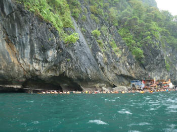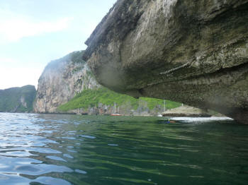 And Koh Muk is glorious. We are anchored right next to soaring limestone cliffs undercut at the base for that very Asian look that we've seen in so many photographs, & which made such an impression on me during my first visit to this part of the world