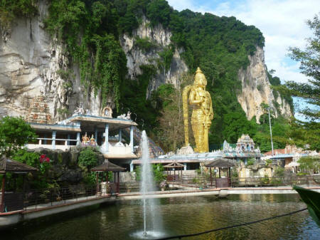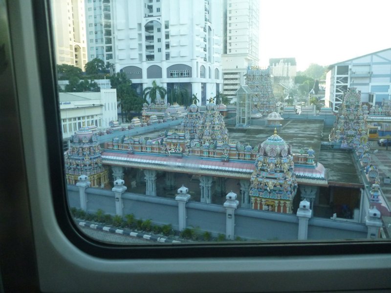 When I arrived at KL Sentral station, I tried to walk to the hotel, asking for directions to the old railway station on the way, but was sent in the exact opposite direction. So, hot, sweaty & wanting to get to Batu Caves, I took a 10 Ringgit taxi to The 5 Elements Hotel, & was pleased with my choice. In the middle of Chinatown, it has a spacious, clean lobby, friendly, helpful staff, & a nice quiet, clean room on the 11th floor. I dumped my pack & carried only my wallet & camera in the fanny pack. I walked back to Sentral (now I knew the way) & in trying to figure out which line to take to Batu Caves (Sentral is a big hub of many transports), I asked a young girl who exclaimed, "I'm going there too!" She was with another girl, both from Vietnam, so together we figured out where to go & were all pleasantly surprised to learn that it's only 1 Ringgit for the 30-minute ride to the end of the line. That's a bargain at 33 cents.